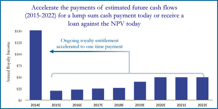 Accelerate the payments of estimated future cash flows (2015-2022) for a lump sum cash payment today or receive a loan against that value